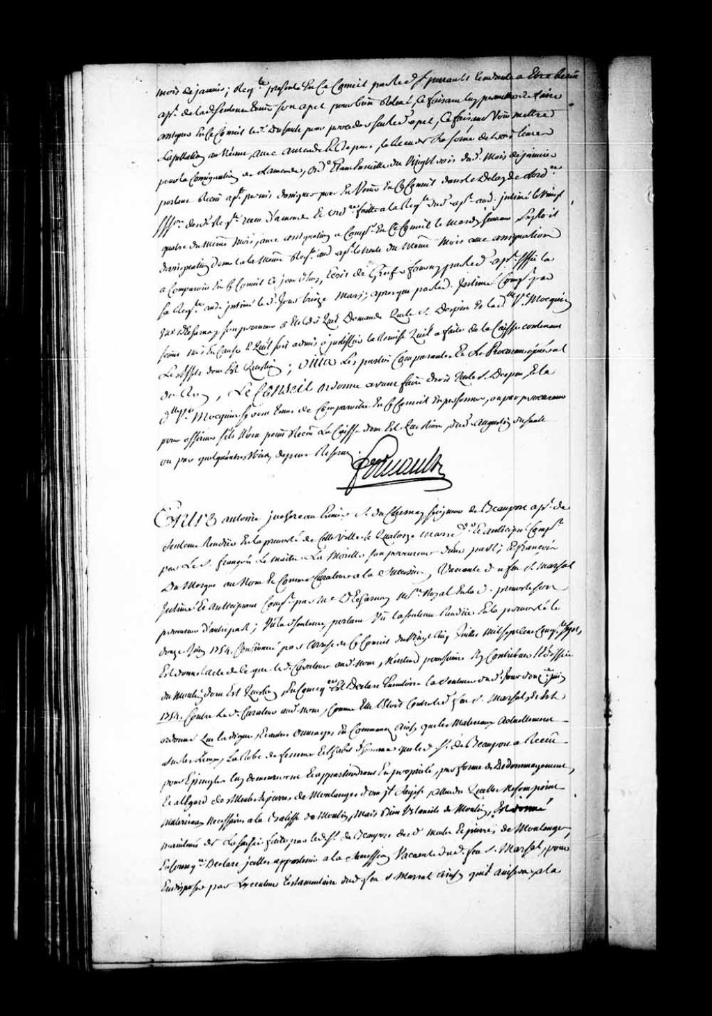 Appel mis à néant de la sentence rendue en la Prévôté de Québec, le 14 mars 1757, dans la cause entre Antoine Juchereau Duchesnay, seigneur de Beauport, contre François Dumergue, au nom et comme curateur à la succession vacante du sieur Marsal, intimé. Le Conseil, sur la demande incidente formée par Antoine Juchereau Duchesnay pour raison de la meule prétendue donnée à lui par le feu sieur Duchesnay, a renvoyé l'appelant (Duchesnay) à se pourvoir ainsi qu'il appartiendra, 10 avril 1758, Archives nationales à Québec, Fonds Conseil souverain, (03Q,TP1,S28,P21418).