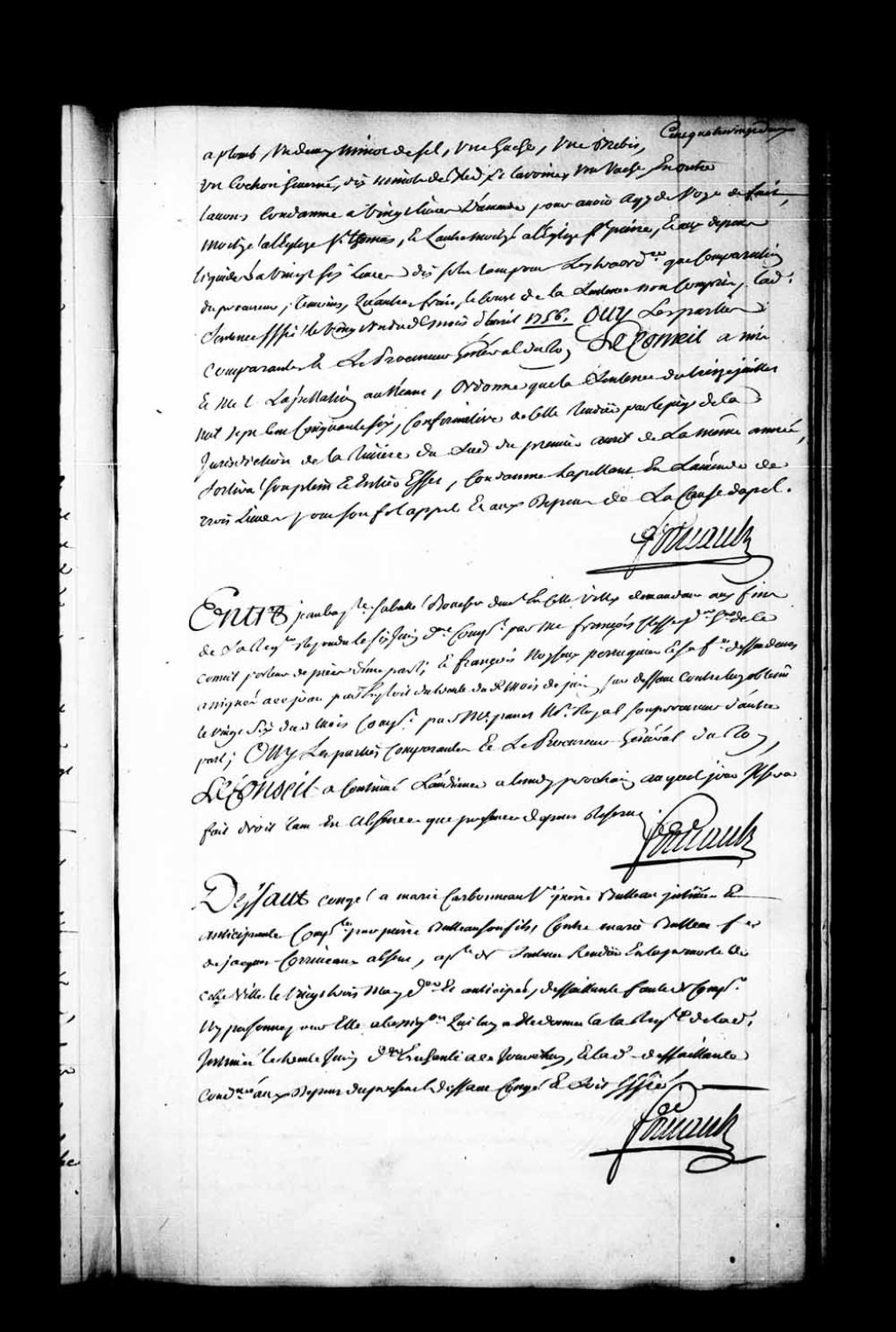 Arrêt qui continue l'audience à lundi prochain auquel jour sera fait droit, tant en absence que présence, dans la cause entre Jean-Baptiste Sabaté, boucher de Québec, contre François Noiseux, perruquier