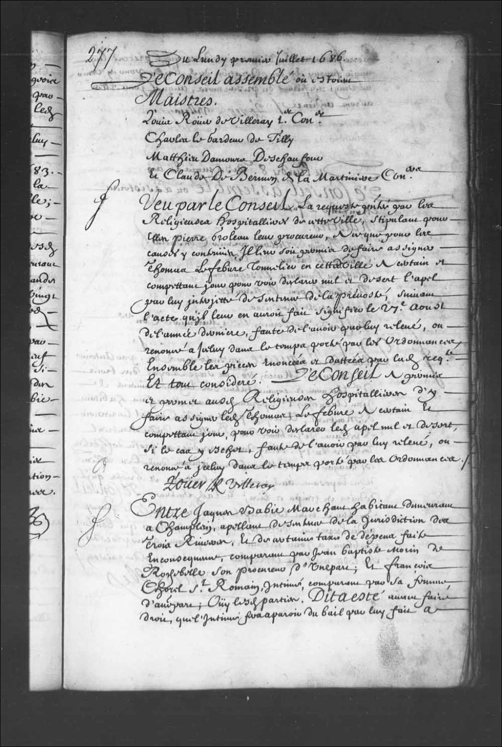 - Provisoire ordonnant que François Chorel Saint-Romain fera apparoir un certain bail fait à Pierre Jouineau (Juneau, Juineau) et qu'il comparaîtra ainsi que Jacques Babie (Baby), habitant demeurant à Champlain, le 29 juillet 1686