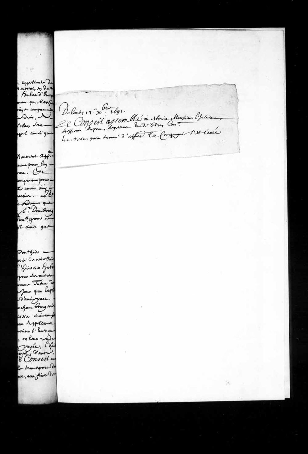 Ne s'étant point trouvée d'affaire, la Compagnie s'est levée, 17 décembre 1691, Archives nationales à Québec, Fonds Conseil souverain, (03Q,TP1,S28,P4617).