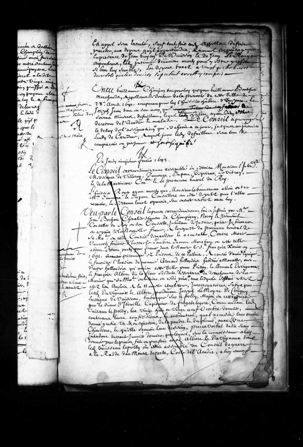 Délai jusqu'au premier lundi du carême pour les parties Guillaume Changeon (Chanjon) et Guillaume Bouthier et Joseph Jean, 26 janvier 1693, Archives nationales à Québec, Fonds Conseil souverain, (03Q,TP1,S28,P4799).