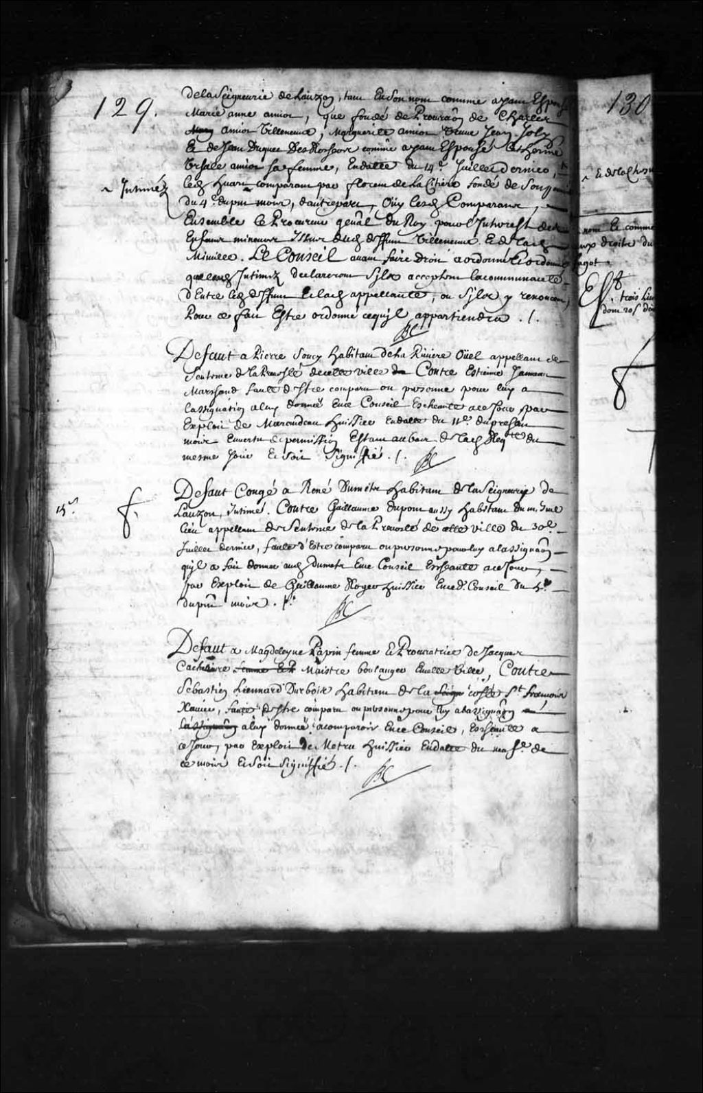 Défaut à Pierre Soucy, habitant de la Rivière-Ouelle contre Étienne Janneau, marchand, 18 novembre 1697, Archives nationales à Québec, Fonds Conseil souverain, (03Q,TP1,S28,P5065).