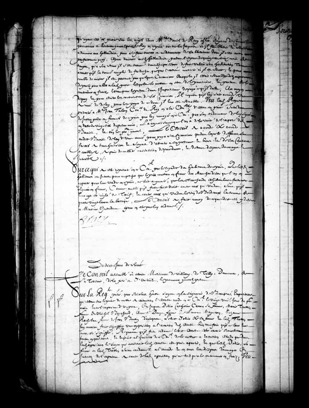 Arrêt qui renvoi à l'Intendant une plainte du syndic des habitants contre les marchands qui vendent le vin de Bordeaux à 80 livres la barrique, 30 juillet 1667, Archives nationales à Québec, Fonds Conseil souverain, (03Q,TP1,S28,P521).