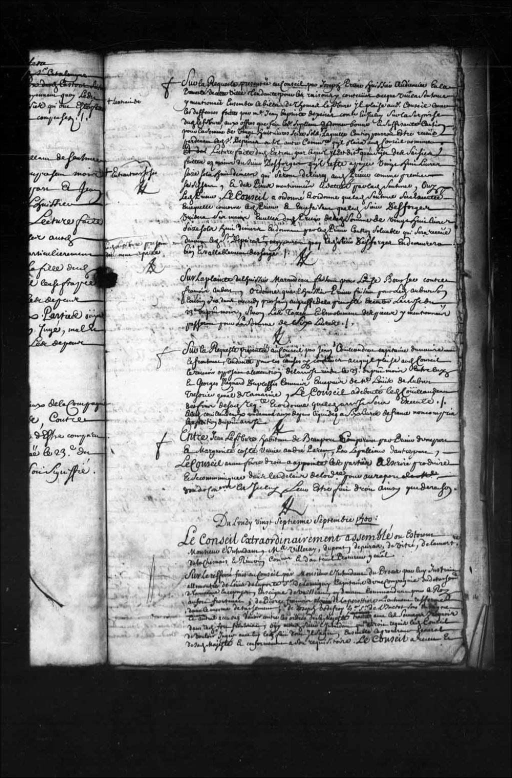 Ordre à Joseph Prieur, huissier, d'aller exécuter l'arrêt du 23 août 1700 rendu entre Louise Boucher et François Aubert, 30 août 1700, Archives nationales à Québec, Fonds Conseil souverain, (03Q,TP1,S28,P5515).