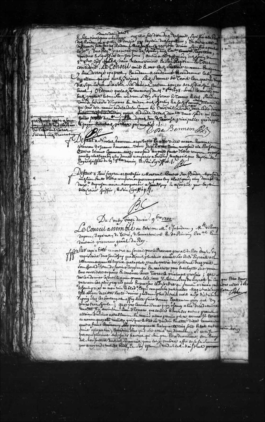 Défaut accordé à Nicolas Gouvereau (Gauvereau, Gauvreau) arquebusier en cette ville, comme procureur de Jeanne Gouvereau, veuve de Jacques Poirier, marchand à La Rochelle, contre Étienne Jeanneau (Janneau, Janot), marchand, 15 novembre 1700, Archives nationales à Québec, Fonds Conseil souverain, (03Q,TP1,S28,P5552).