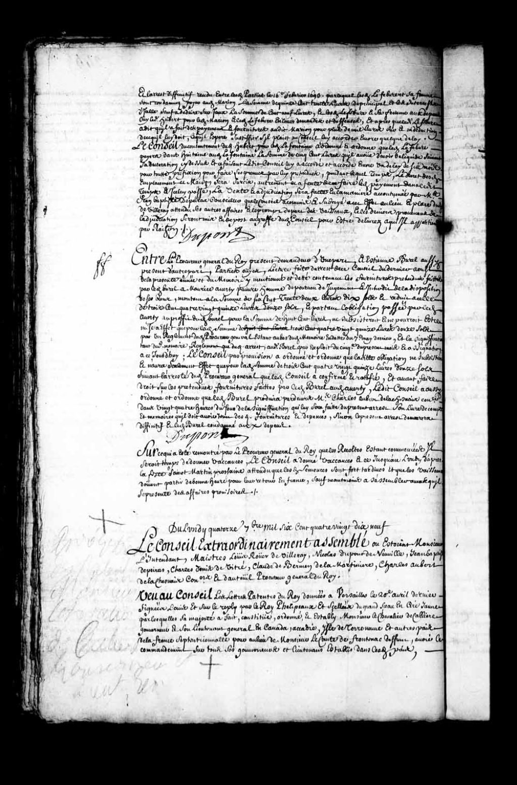 Vacances pour les récoltes jusqu'au lundi d'après la Saint-Martin, 7 septembre 1699, Archives nationales à Québec, Fonds Conseil souverain, (03Q,TP1,S28,P6335).