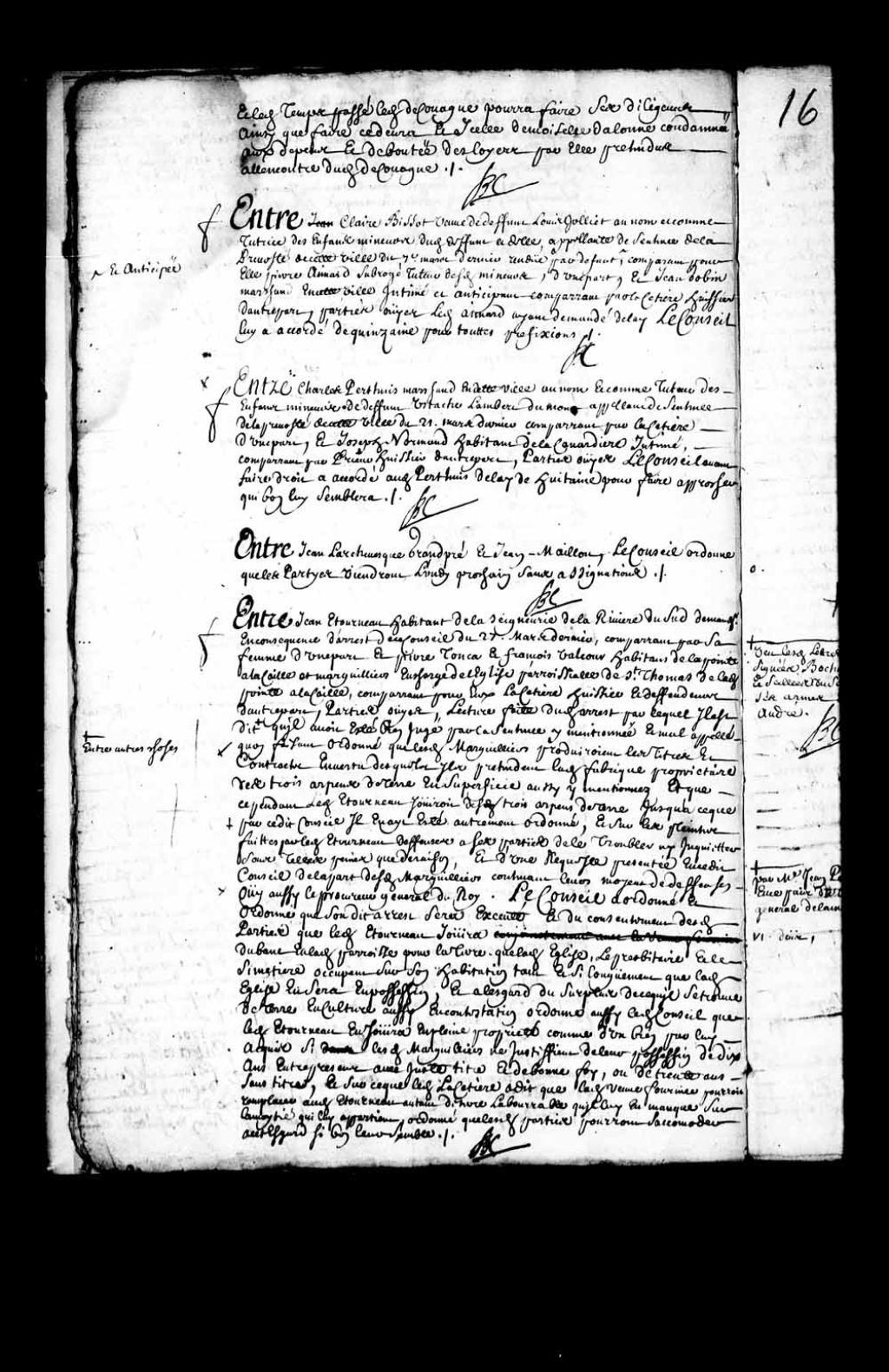 Ordre aux parties, Jean Larchevêque dit Grandpré et Jean Mailloux de venir lundi prochain sans assignation, 26 juin 1702, Archives nationales à Québec, Fonds Conseil souverain, (03Q,TP1,S28,P7301).