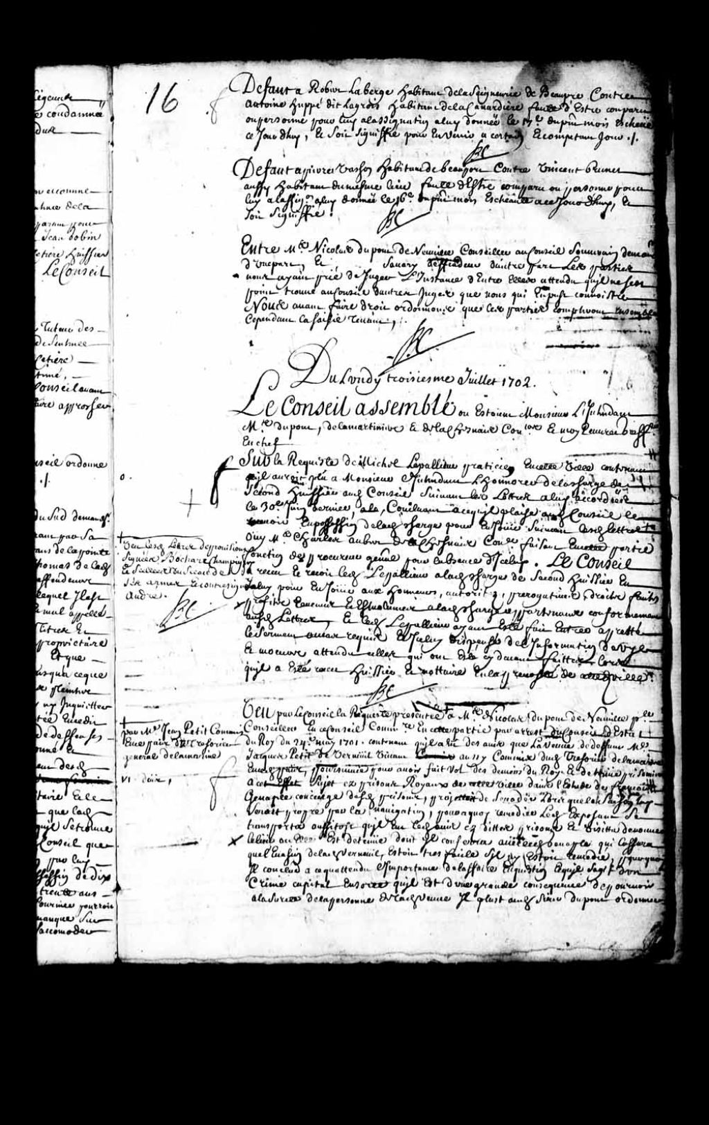 Défaut accordé à Pierre Vachon, habitant de Beauport contre Vincent Brunet, habitant du même lieu, 26 juin 1702, Archives nationales à Québec, Fonds Conseil souverain, (03Q,TP1,S28,P7304).