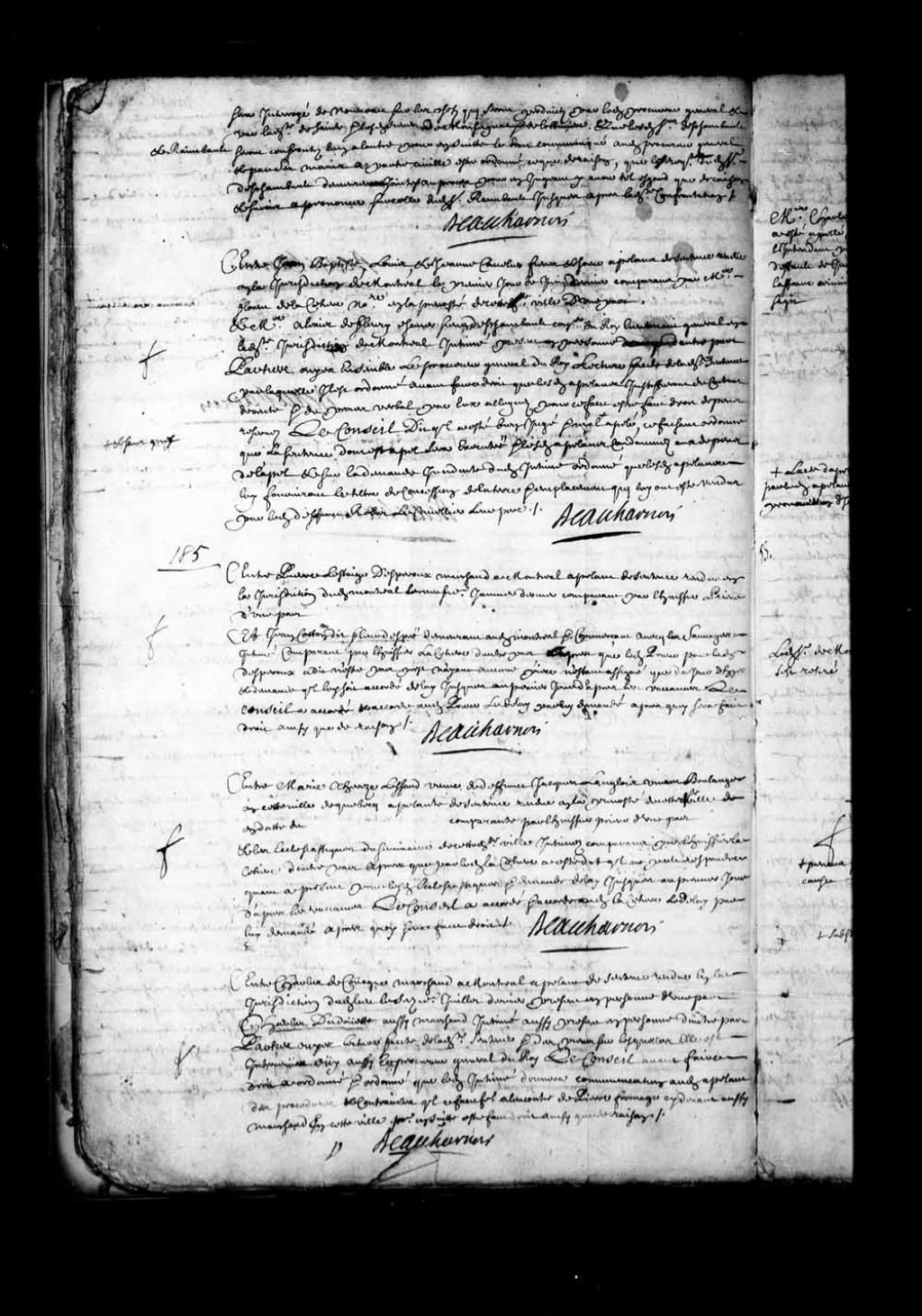 Arrêt accordant un délai aux Ecclésiastiques du Séminaire de Québec dans la cause les opposant à Marie-Thérèse Lessard, veuve de défunt Jacques Langlois, boulanger de Québec, appelante d'une sentence rendue en la dite Prévôté, 7 septembre 1703, Archives nationales à Québec, Fonds Conseil souverain, (03Q,TP1,S28,P7702).