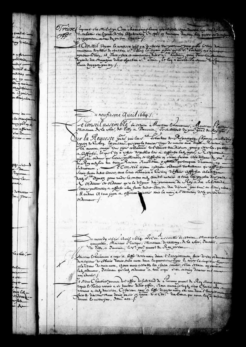 Nomination de sieur Gondouin comme garde magasin du Fort et Château Saint-Louis, 2 avril 1664, Archives nationales à Québec, Fonds Conseil souverain, (03Q,TP1,S28,P93).