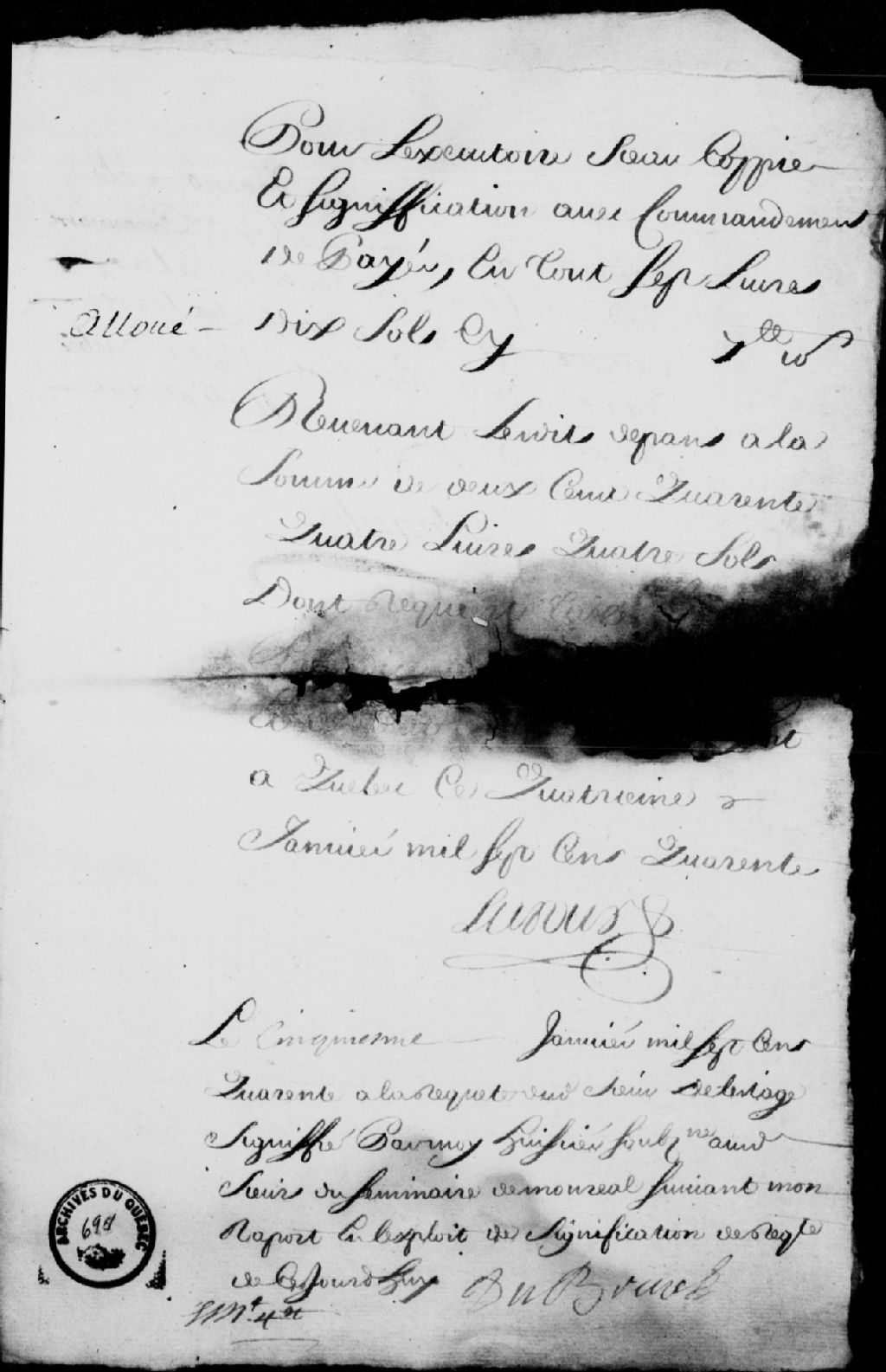 - Ce dossier comprend des requêtes, le mémoire des dépens et un procès-verbal signé Estèbe et Daine. Les pièces sont signées par Latour, Hocquart, Dubreuil, Estèbe et Daine