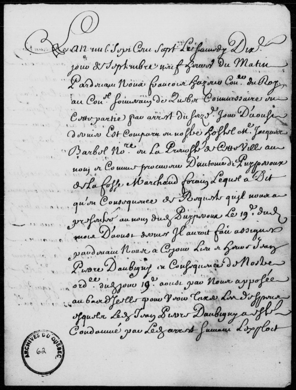 - Mémoire des dépens à payer pour voie de fait et insultes par Jean-Pierre d'Aubigny, à la requête d'Antoine de Lafosse de Puyperoux (Puypérou), marchand forain, à la suite d'un arrêt du Conseil supérieur de Québec en date du 16 août 1707