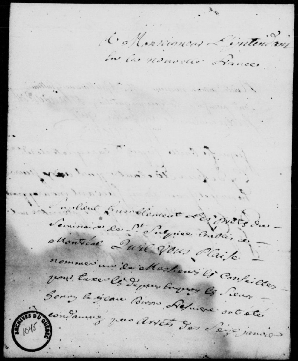 Mémoire des dépens à payer par Henri Biron et Jean Biron Fresnière (Baron Lafresnière), frères, à la requête des sieurs Ecclésiastiques du Séminaire de Saint-Sulpice, établis à Montréal, à la suite des arrêts du Conseil supérieur de Québec des 16 janvier 1747 et 10 juillet 1747