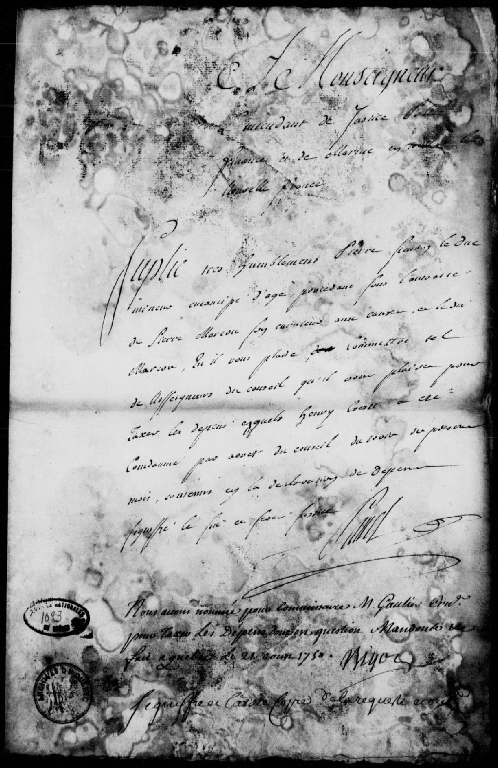 - Mémoire des dépens à payer par Henri Creste (Crête), taillandier, à la requête de Pierre-Simon Leduc, mineur émancipé, procédant sous l'autorité de Pierre Marcoux, son curateur, à la suite de l'arrêt du Conseil supérieur de Québec du 3 août 1750
