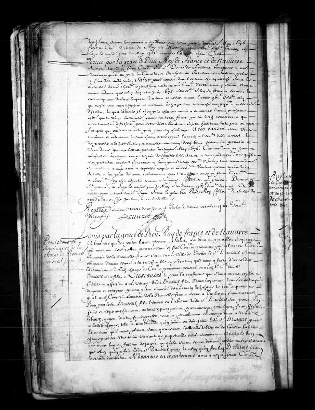 Brevet de confirmation par le Roi de l'arrêt de Son Conseil d'État du même jour concernant le retranchement des concessions de trop grande étendue et la distribution des parties de concession retranchées