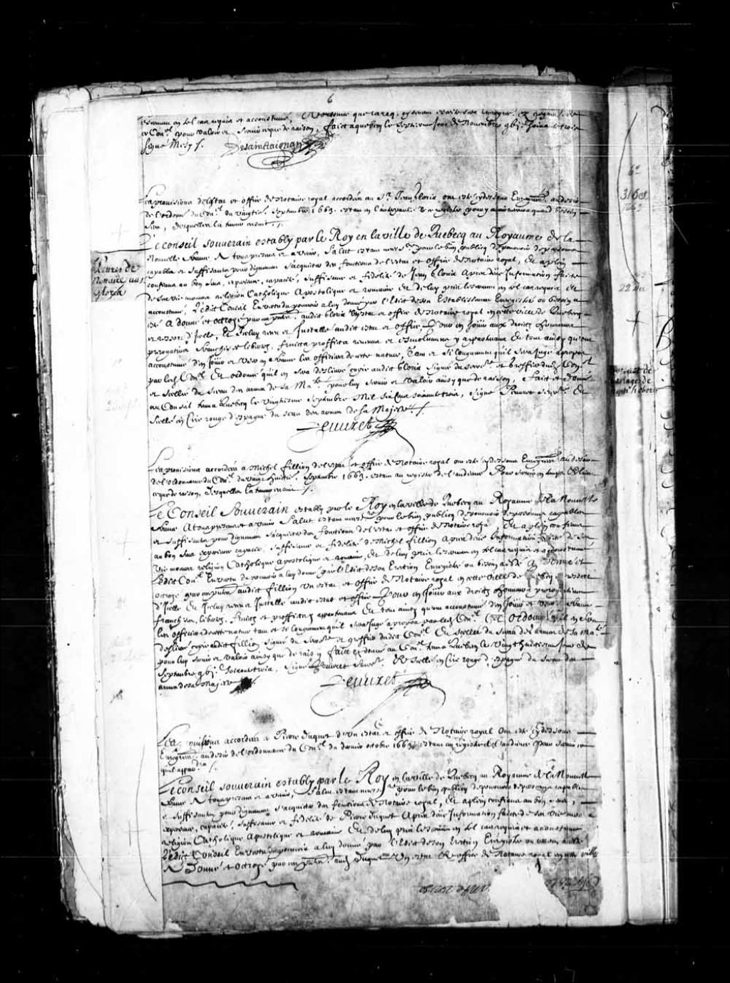Commission de notaire royal à Québec pour Jean Gloria par le Conseil souverain de la Nouvelle-France