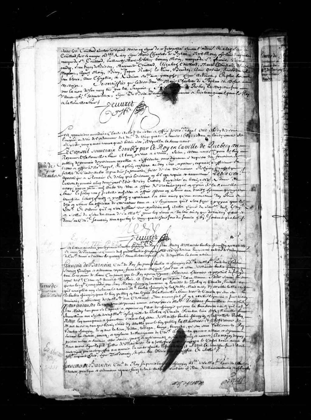 Commission de notaire royal à Québec pour Claude Aubert par le Conseil souverain de la Nouvelle-France