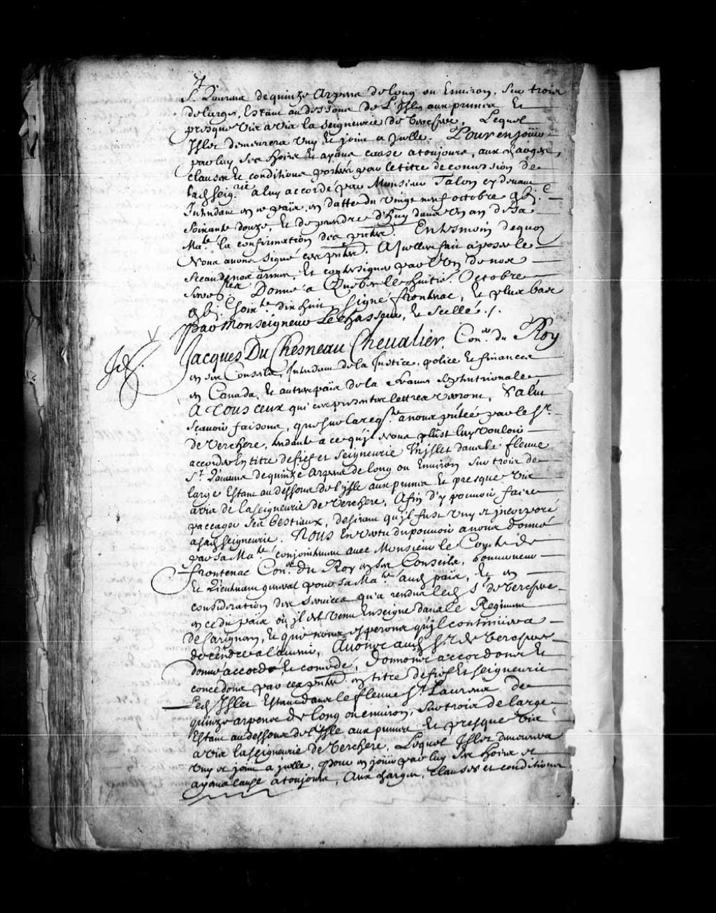 Concession par Jacques Duchesneau, intendant de la Nouvelle-France, au sieur de Verchères d'îles dans le fleuve Saint-Laurent à proximité de la seigneurie de Verchères, 22 octobre 1678, Archives nationales à Québec, Fonds Conseil souverain, (03Q,TP1,S36,P227).