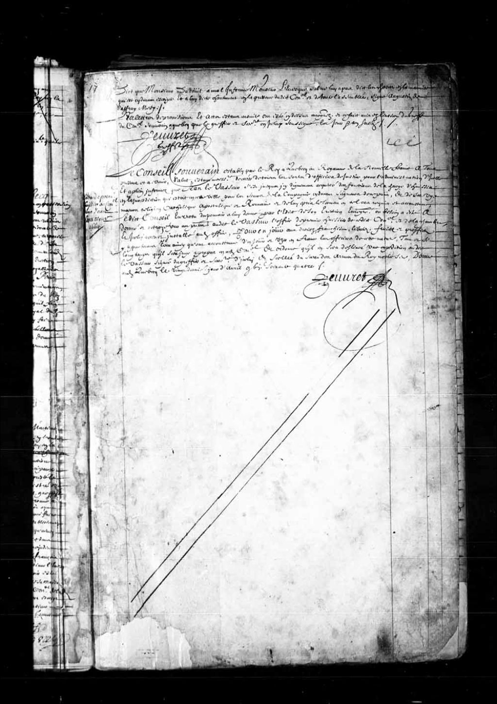 Commission de premier huissier du Conseil souverain de la Nouvelle-France pour Jean Levasseur par le Conseil souverain de la Nouvelle-France, 22 avril 1664, Archives nationales à Québec, Fonds Conseil souverain, (03Q,TP1,S36,P29).