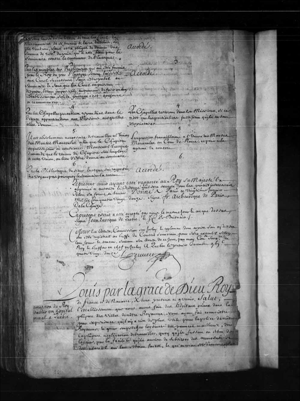 Lettres du Roi pour l'établissement d'un Hôpital général à Québec