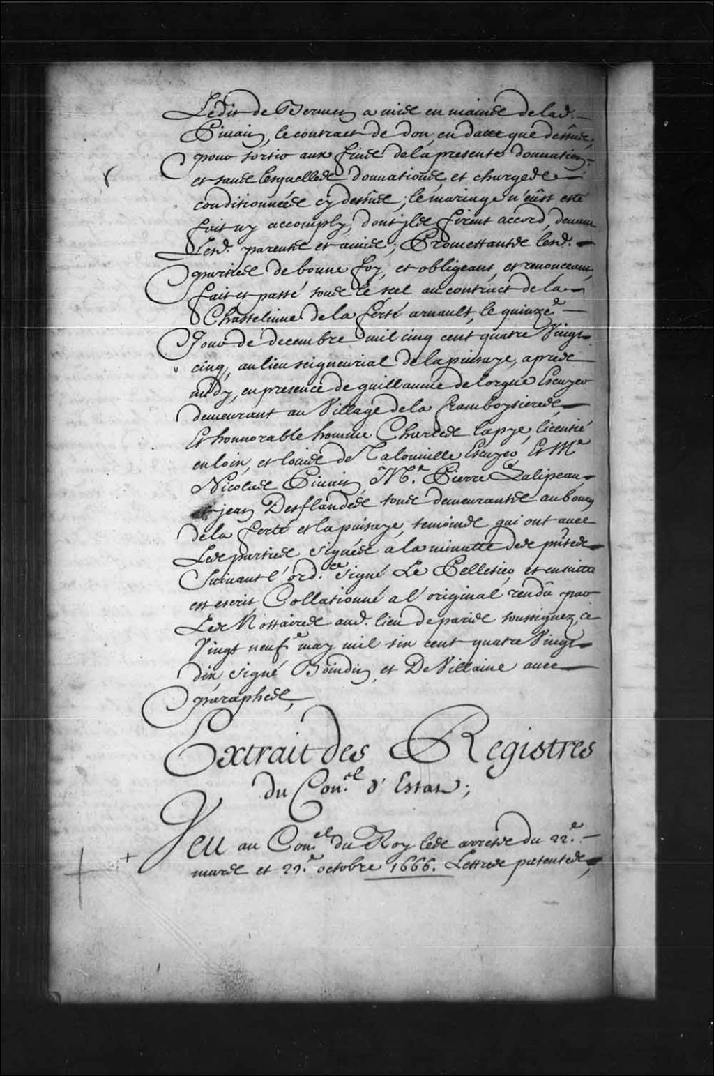 Arrêt du Conseil d'État du Roi gardant et maintenant Jean de Bermen, écuyer, sieur de la Martinière (LaMartinière), et Charles de Bermen, écuyer, sieur d'Infreville, frères, leurs successeurs, enfants et postérité nés et à naître en légitime mariage, en la qualité de noble et d'écuyer, et ordonnant qu'ils jouiront de tous les pouvoirs, privilèges, honneurs et exemptions dont jouissent les gentilshommes du Royaume