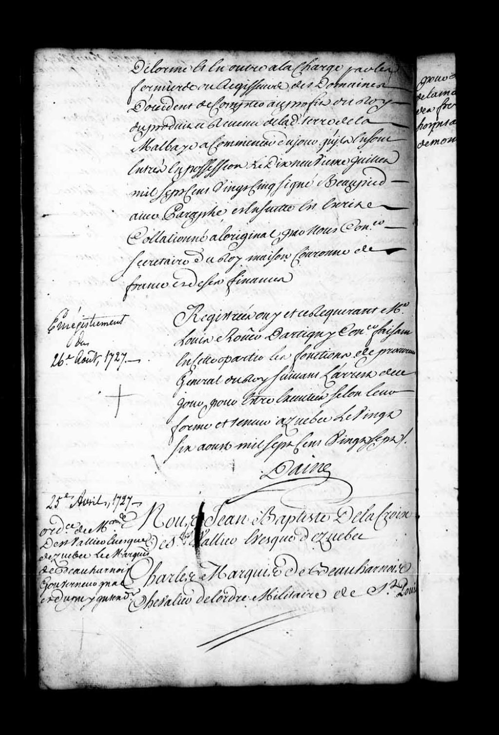 - Ordonnance de Jean-Baptiste de la Croix de Saint-Vallier (Lacroix), évêque de Québec, de Charles de Boische, Marquis de Beauharnois, gouverneur de la Nouvelle-France, et de Claude-Thomas Dupuy (Dupuis), intendant de la Nouvelle-France, directeurs et administrateurs généraux et perpétuels des hôpitaux de la colonie, pour le gouvernement de la maison des Frères Hospitaliers de Montréal chargés de retirer et soigner dans leur maison les pauvres enfants orphelins, les estropiés, les vieillards, les infirmes et autres nécessiteux du sexe masculin
