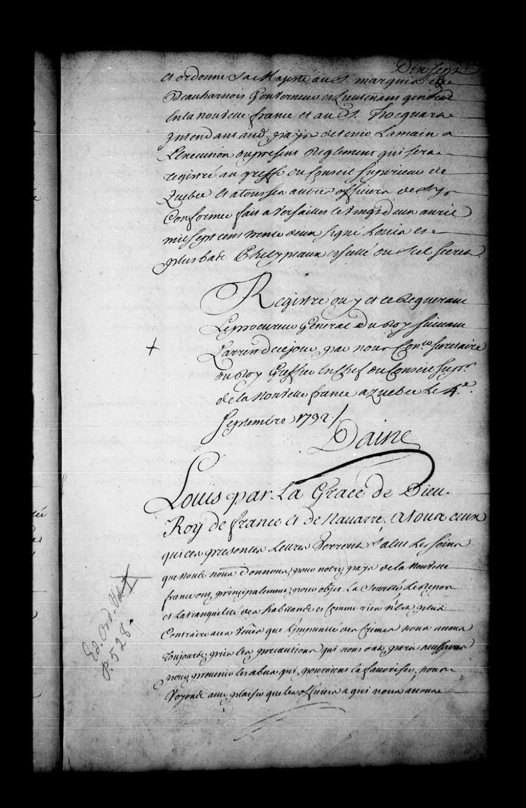 Règlement du Roi au sujet des ecclésiastiques et des religieux qui, par un zèle indiscret, contribuent à faire échapper des coupables à la justice (6 articles), 19 février 1732, Archives nationales à Québec, Fonds Conseil souverain, (03Q,TP1,S36,P720).