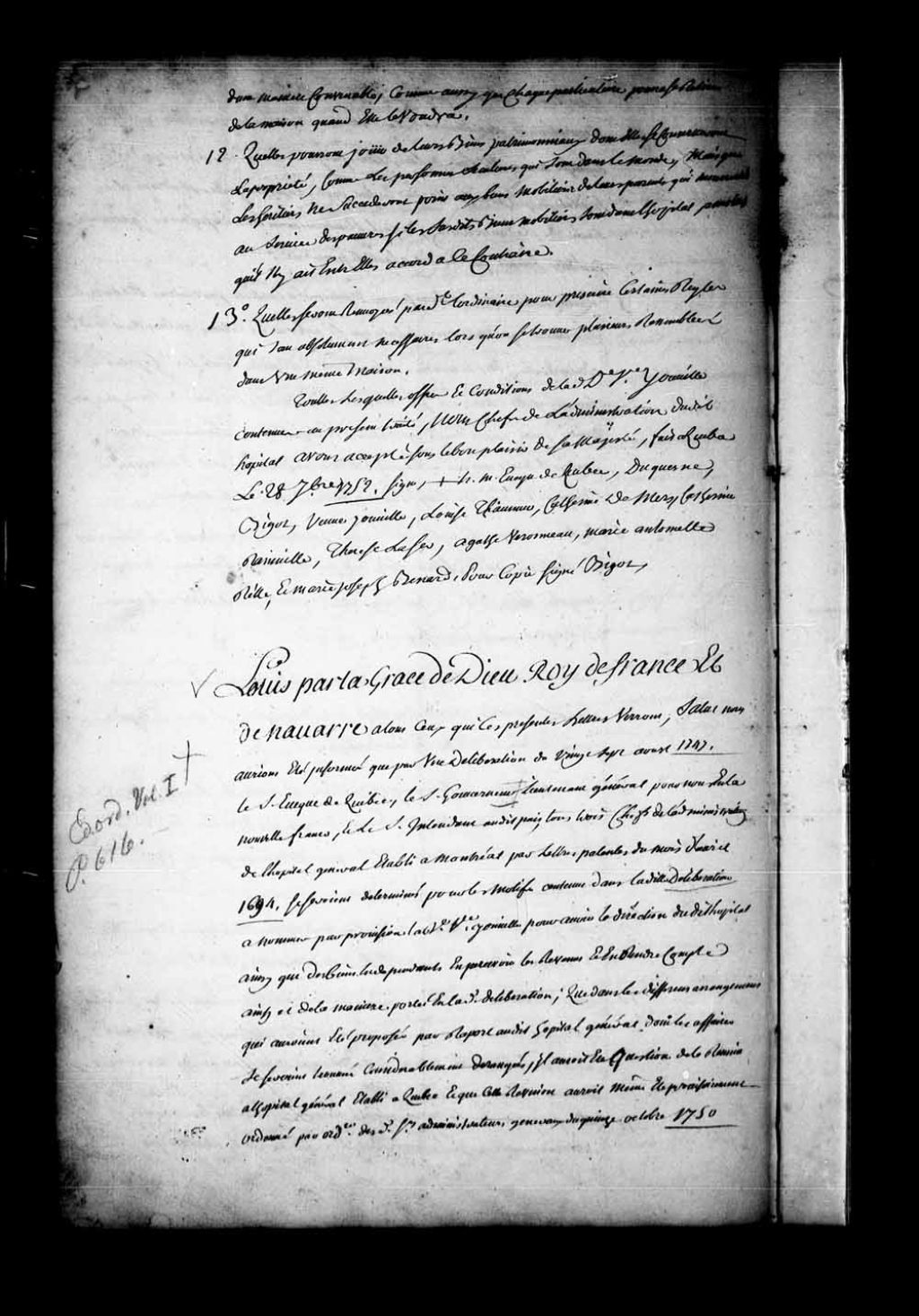 Lettres patentes de Sa Majesté à la dame d'Youville pour l'Hôpital général de Montréal, 3 juin 1753, Archives nationales à Québec, Fonds Conseil souverain, (03Q,TP1,S36,P925).