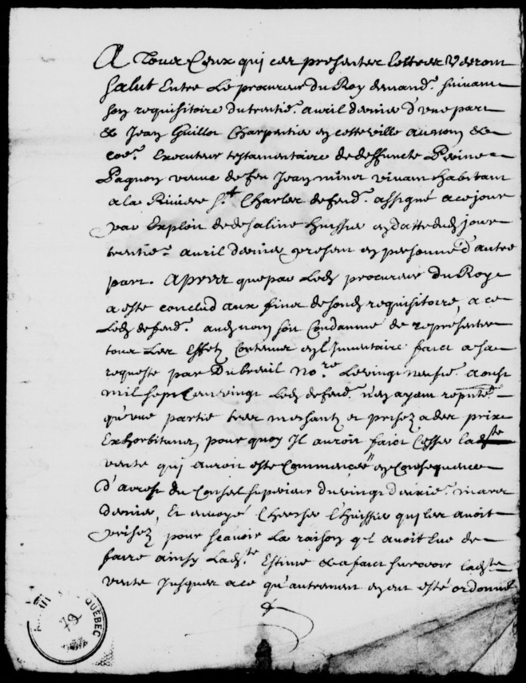 - Ce dossier comprend des appels, des arrêt, un inventaire, etc. Pièces originales signées d'extraits des registres du Conseil supérieur de Québec