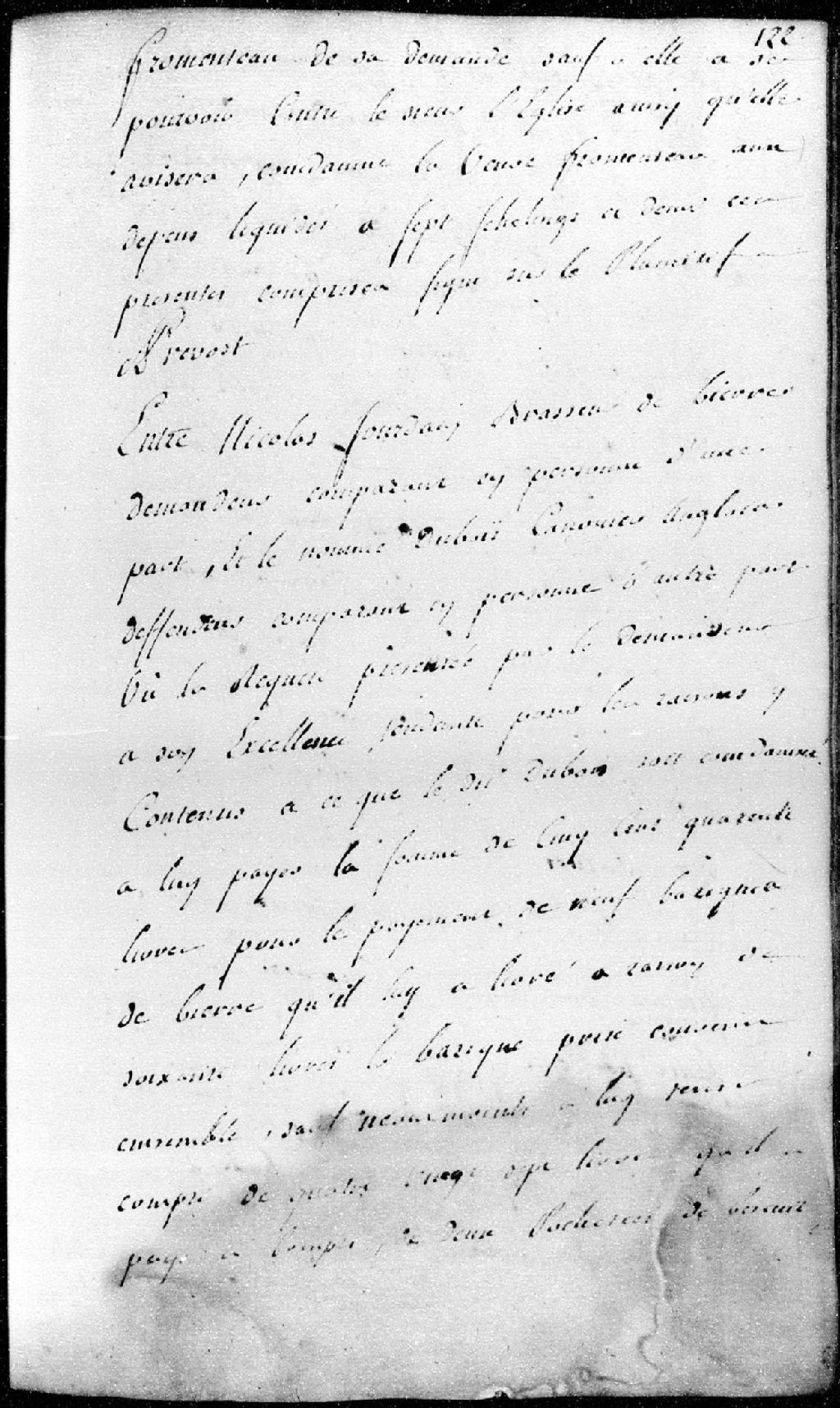 Entre Nicolas Jourdain, brasseur de bière, demandeur, et le nommé Dubois, canonnier anglais, défendeur. Requête présentée afin que le défendeur soit condamné à lui payer la somme de 540 livres pour le paiement de neuf barriques de bière qu'il lui a vendues et livrées à raison de 60 livres la barrique. Le Conseil ordonne, avant de faire droit, que les parties feront preuve par enquête sommaire, 11 février 1761, Archives nationales à Québec, Fonds Conseil militaire de Québec, (03Q,TL9,P1139).