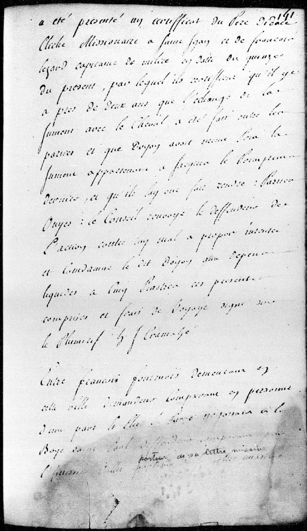 Entre François Fourmois (Fourmoy), demeurant en cette ville (Québec), demandeur, et Élie La Parre (Laparre), négociant à Baie Saint-Paul, défendeur. Requête présentée afin que le défendeur soit condamné à l'acquitter, le garantir et l'indemniser de la somme de 600 livres en espèces dont il a répondu pour lui envers le sieur Dalaire (Dallaire), 18 février 1761, Archives nationales à Québec, Fonds Conseil militaire de Québec, (03Q,TL9,P1162).