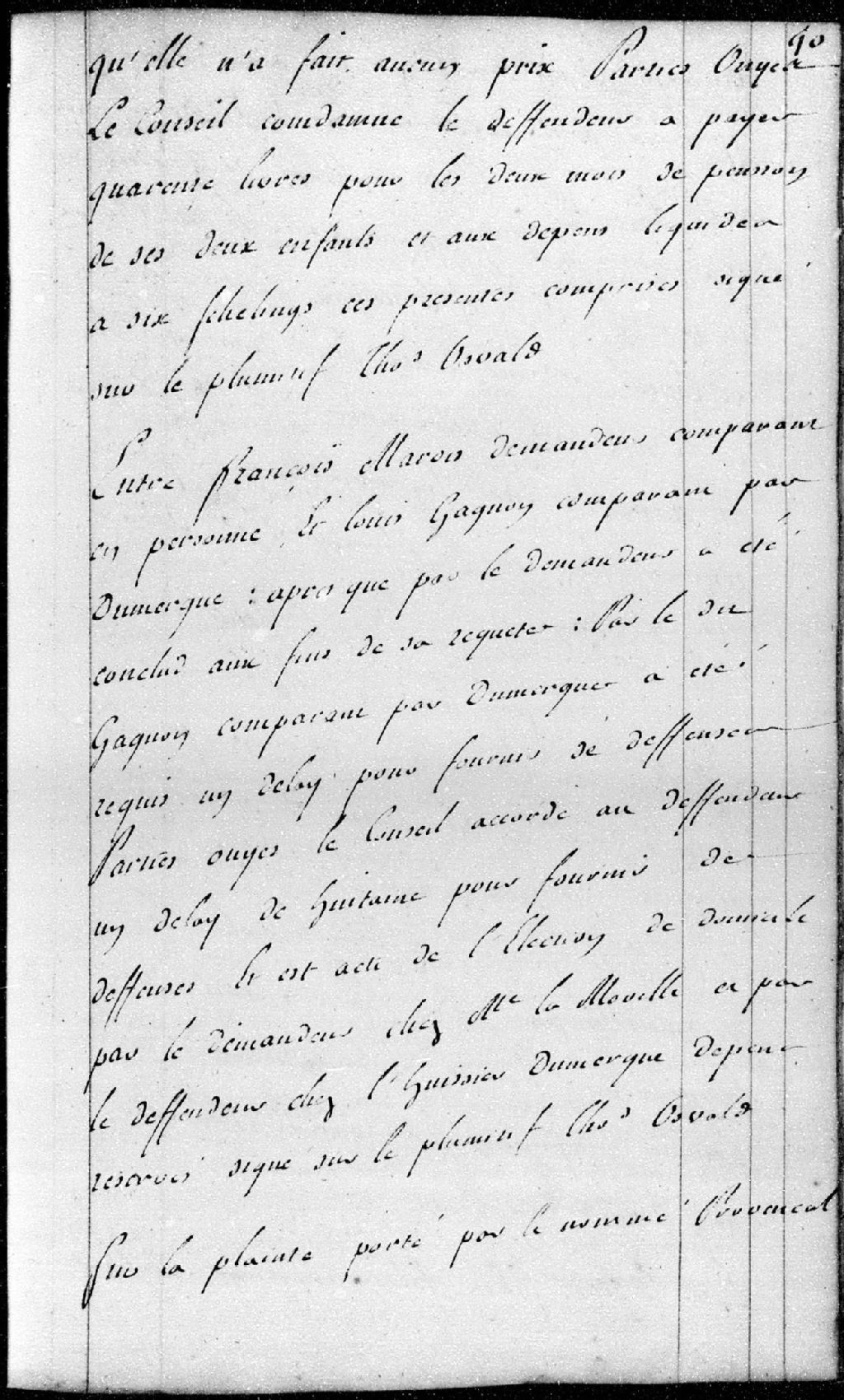 À propos de la plainte portée par le nommé Provençal au sujet d'un cheval qui lui a été pris après la prise de Québec. Le Conseil ordonne avant de faire droit que le demandeur fera preuve que le cheval qui est chez Petit Clerc (Petitclerc) lui appartient, 27 juin 1761, Archives nationales à Québec, Fonds Conseil militaire de Québec, (03Q,TL9,P2056).