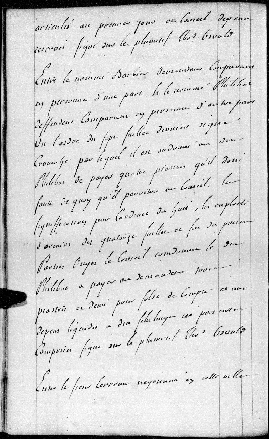 Entre le sieur Terroux (Théroux), négociant en cette ville (Québec), demandeur, et le nommé Brunet, charretier en cette ville, défendeur. Le Conseil ordonne, avant de faire droit, que ledit Brunet prouvera par témoins que ce n'est point de sa faute si ladite tonne d'eau-de-vie a été défoncée et que c'était un accident, 12 août 1761, Archives nationales à Québec, Fonds Conseil militaire de Québec, (03Q,TL9,P2152).