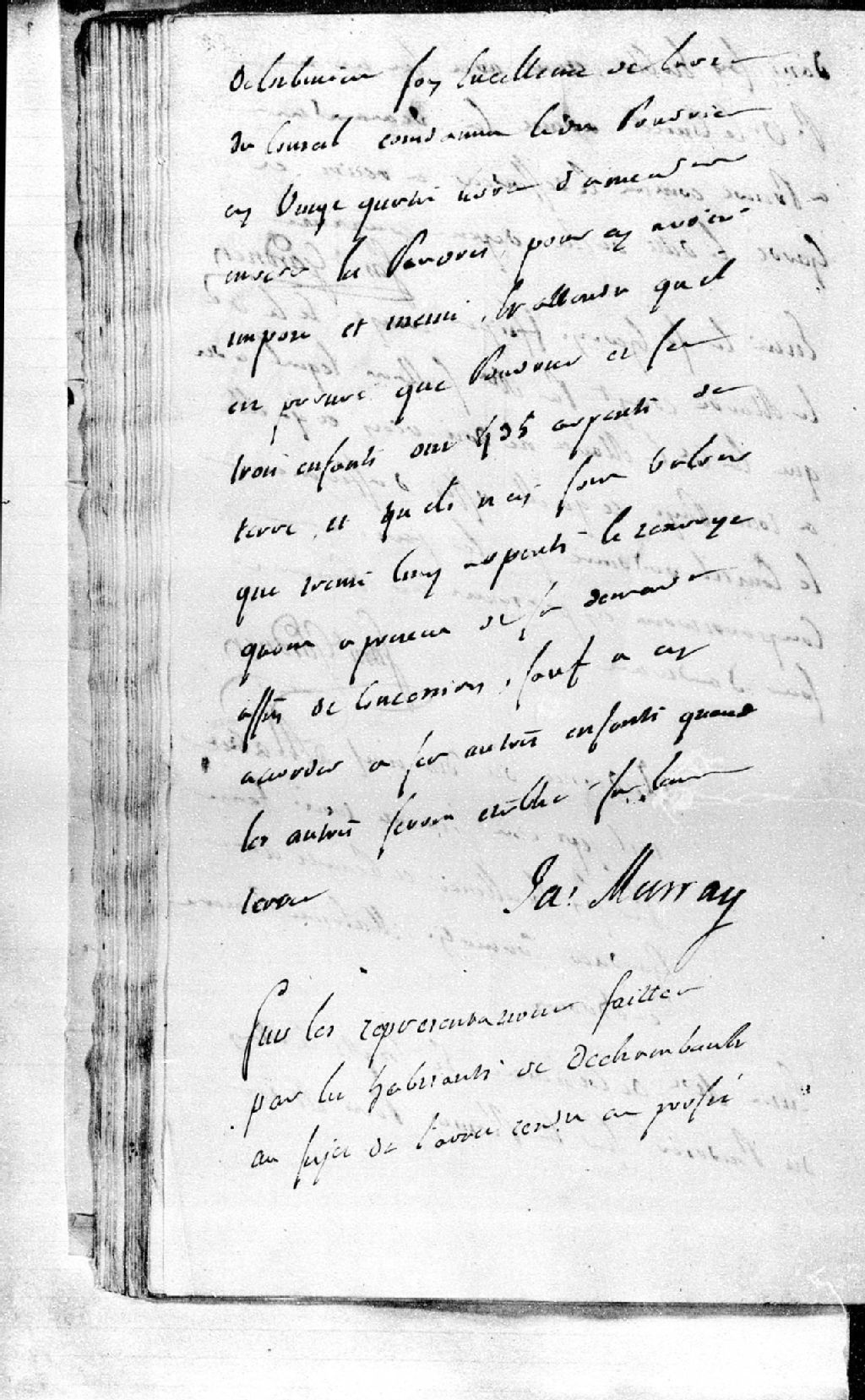 Sur les représentations faits par les habitants de Deshambault contre l'arrêt rendu au profit du sieur De la Gorgendière, le Conseil ordonne un sursis à l'exécution dudit arrêt jusqu'à ce qu'il en soit jugé définitivement, 19 mars 1763, Archives nationales à Québec, Fonds Conseil militaire de Québec, (03Q,TL9,P5075).