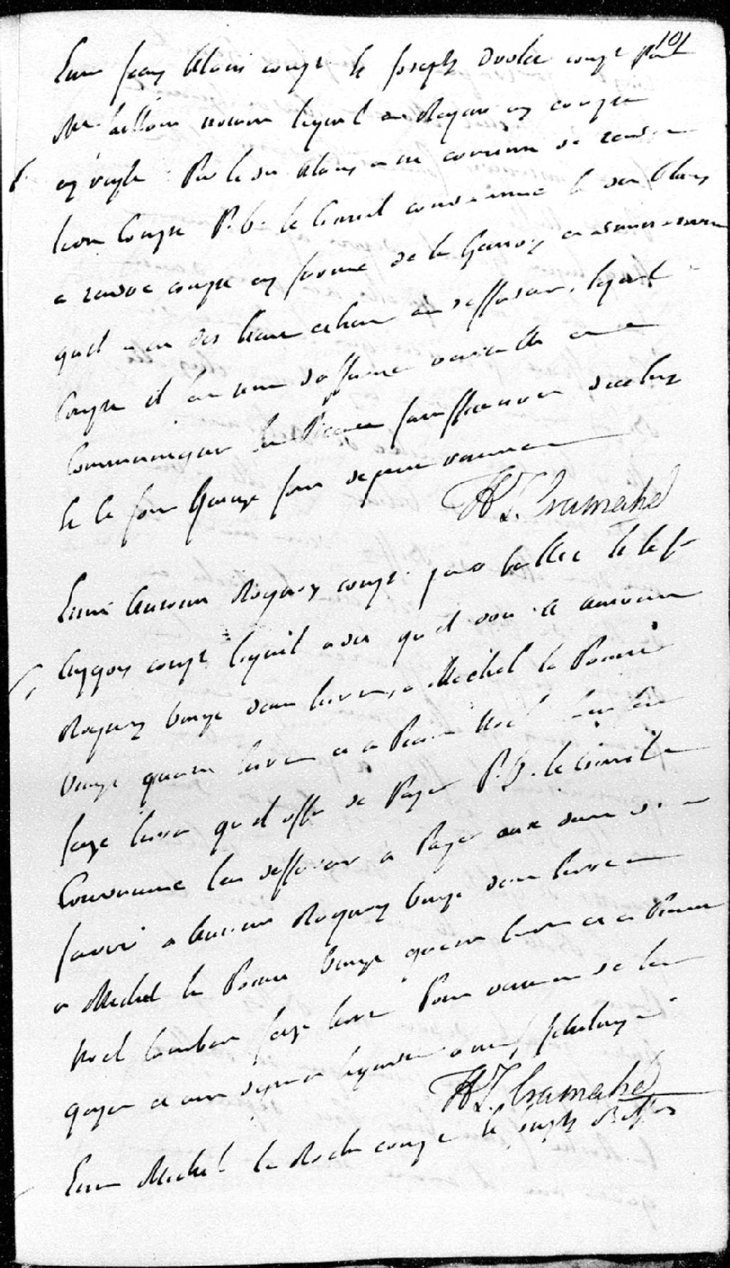 Entre Michel Laroche, demandeur et Joseph Bisson, défendeur. Le Conseil entend les témoins Angélique Hamel, femme de Michel Moreau, André Hamel, Louise Constantin, François Traversy, fils et Pierre Massé. Le Conseil ordonne que ledit lit que le nommé Dorion a vendu sera remis audit Laroche. Le Conseil condamne ledit Dorion à remettre 8 piastres et condamne ledit Bisson à payer à Laroche 10 piastres sous forme de dédommagement pour avoir gardé des effets lui appartenant et aux dépens liquidés à 45 shillings, 13 juillet 1763, Archives nationales à Québec, Fonds Conseil militaire de Québec, (03Q,TL9,P5367).