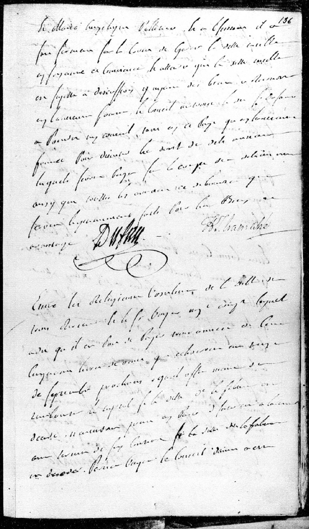 Entre les Religieuses Ursulines de Trois-Rivières, demandeur et sieur Voyer, négociant, défendeur. Le Conseil donne acte des offres faites par le sieur Voyer de payer 3 années de 150 livres de rente qui échoiront au trente septembre prochain pour le douaire de la dame Lefebvre, en conséquence le condamne à payer lesdites trois années sans préjudice de ses droits ou représentations s'il apprend le décès de ladite Lefebvre, 13 août 1763, Archives nationales à Québec, Fonds Conseil militaire de Québec, (03Q,TL9,P5485).