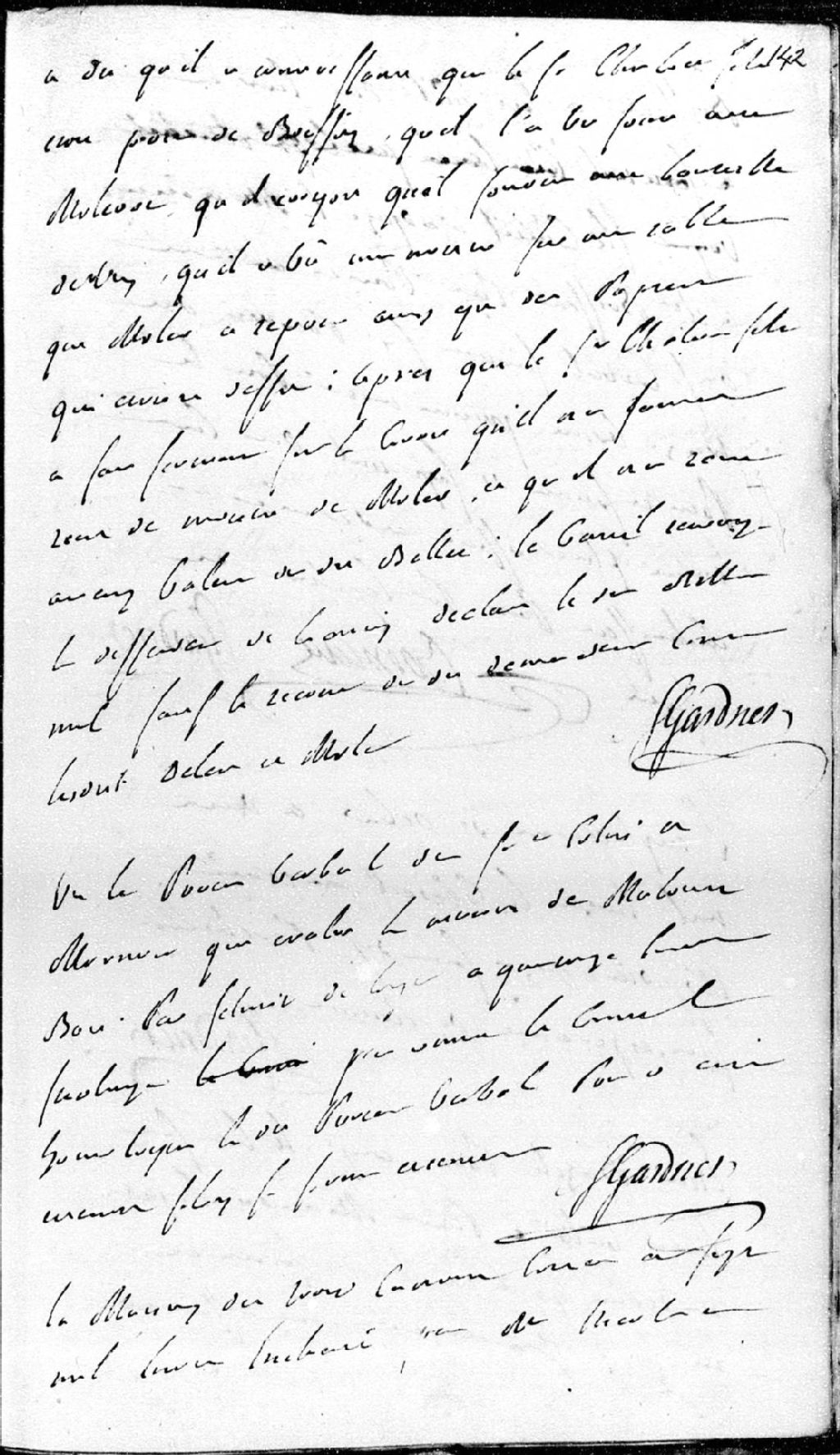 L'achat d'une maison par le sieur Carrel (Caruelle). Le Conseil constate que la maison des trois canons a été enchérie à 7000 livres, puis à 7010 livres par Nicolas Boisseau. Le Conseil adjuge ladite maison audit Boisseau au nom dudit Carrel, suivant le pouvoir de procuration de celui-ci en date du 13 août, pour la somme de 7010 livres et dernier et plus haut enchérisseur, 20 août 1763, Archives nationales à Québec, Fonds Conseil militaire de Québec, (03Q,TL9,P5515).