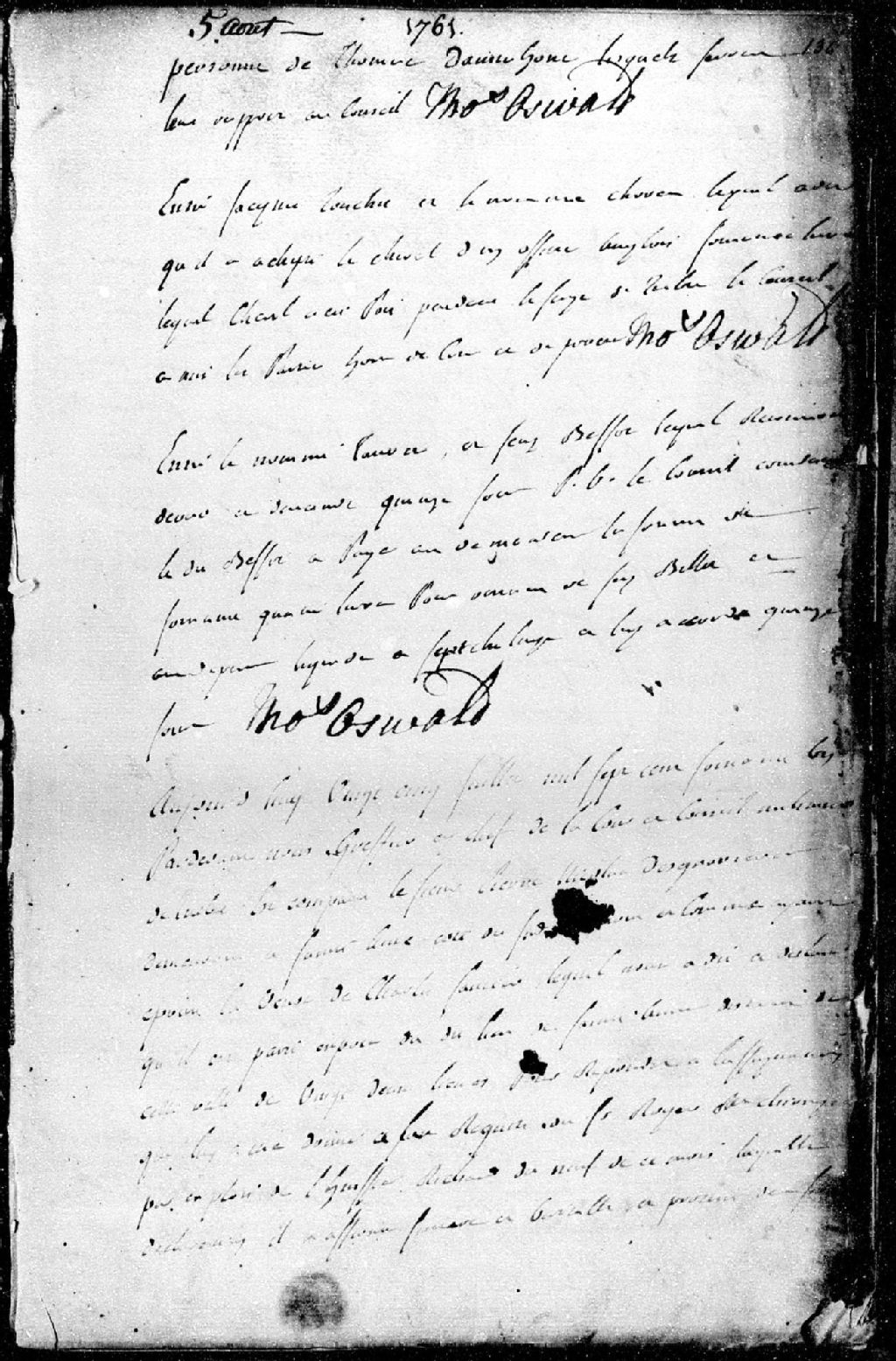 Affirmation des frais de voyage et de séjour du Sieur Pierre Nicolas Desgagnier (Desgagné, Desgagner), demeurant à Saint-Anne Côte du Sud, 25 juillet 1761, Archives nationales à Québec, Fonds Conseil militaire de Québec, (03Q,TL9,P6440).