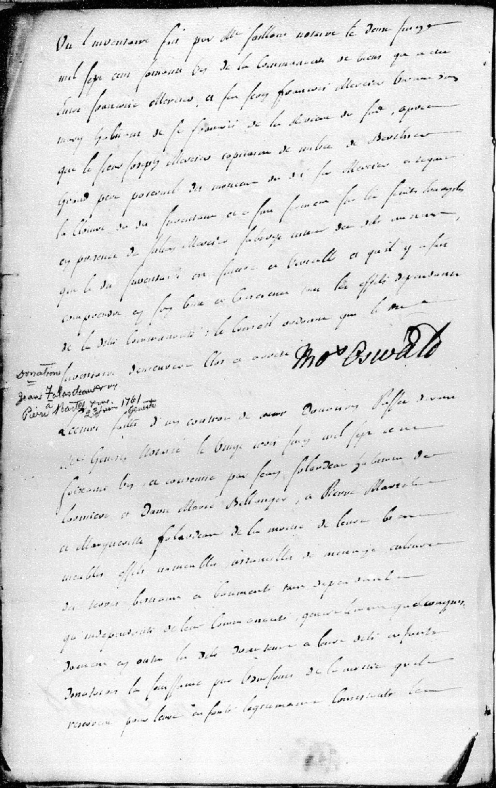 Inventaire de la communauté de biens entre Françoise Mercier et feu Jean François Mercier, habitant de Saint-François de la rivière, passé devant maître Saillant, notaire. Le Conseil ordonne que l'inventaire demeurera clos et arrêté, 5 août 1761, Archives nationales à Québec, Fonds Conseil militaire de Québec, (03Q,TL9,P6443).