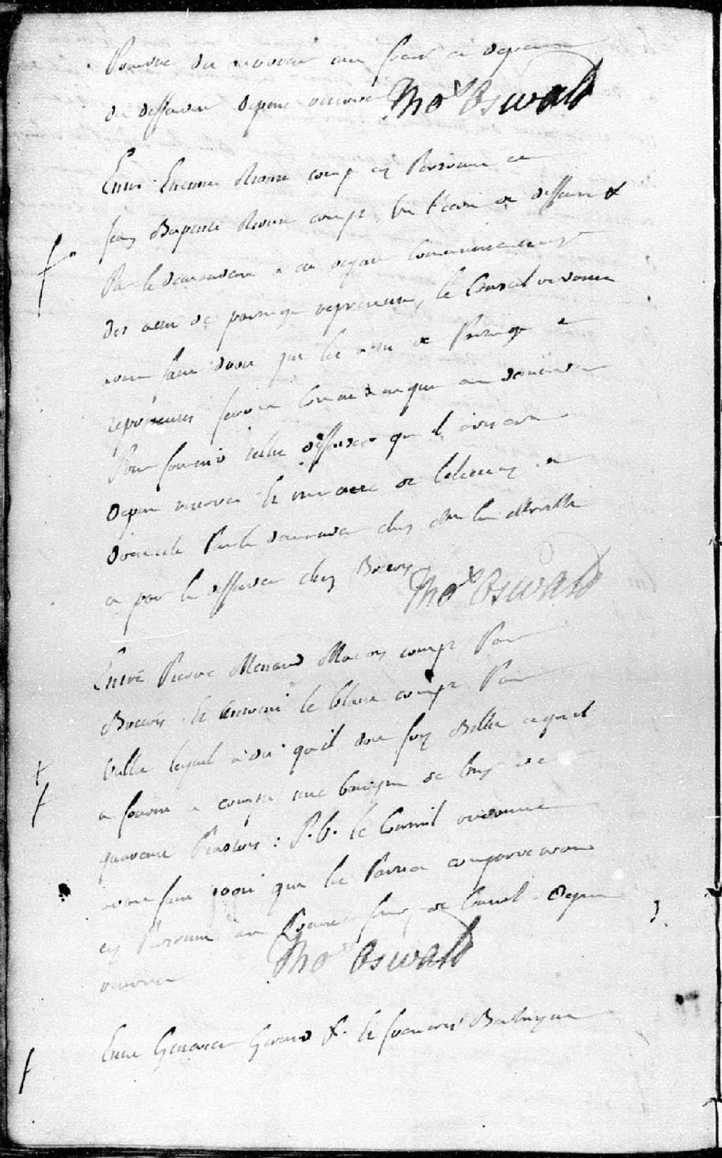 Entre Geneviève Girard, demanderesse, et François Berllinguet, compar[aîss]ant par maître La Morille, défendeur. Le Conseil ordonne que ledit Sieur Berlinguet sera tenu de faire liquider les droits de sa femme sous quinze jours, faute de quoi le condamne dès à présent à payer 200 livres de pension à compter de ce jour, 26 août 1761, Archives nationales à Québec, Fonds Conseil militaire de Québec, (03Q,TL9,P6501).