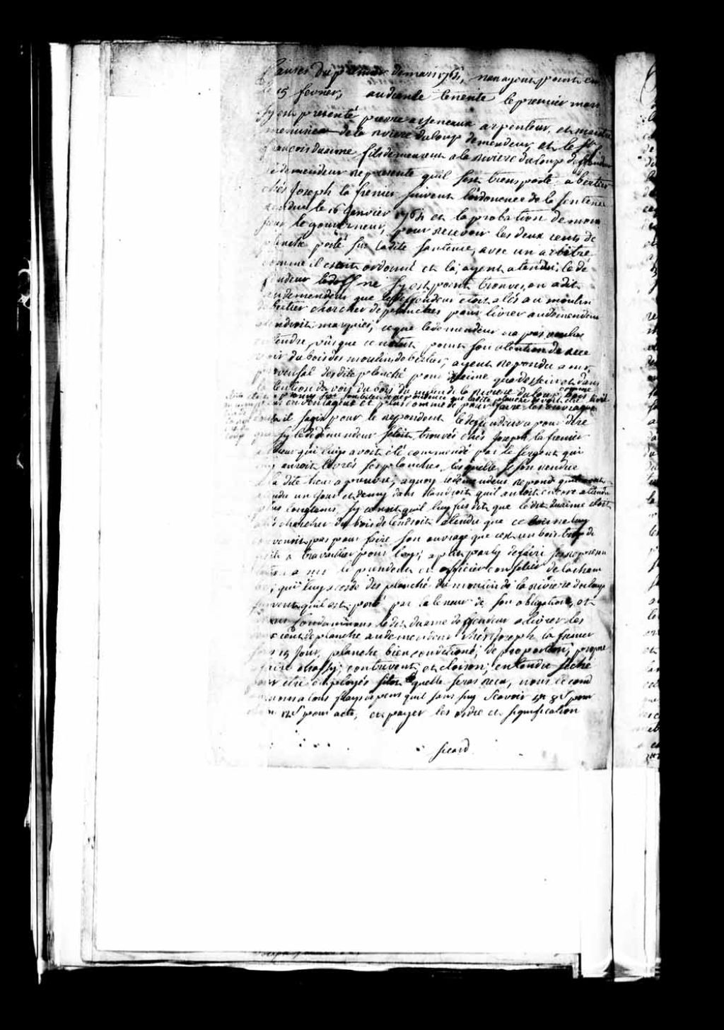 La présente pièce a été signé par [Jean] Sicard, capitaine de milice de [Maskinongé] et président de la Cour de la Chambre de milice de la Rivière-du-Loup