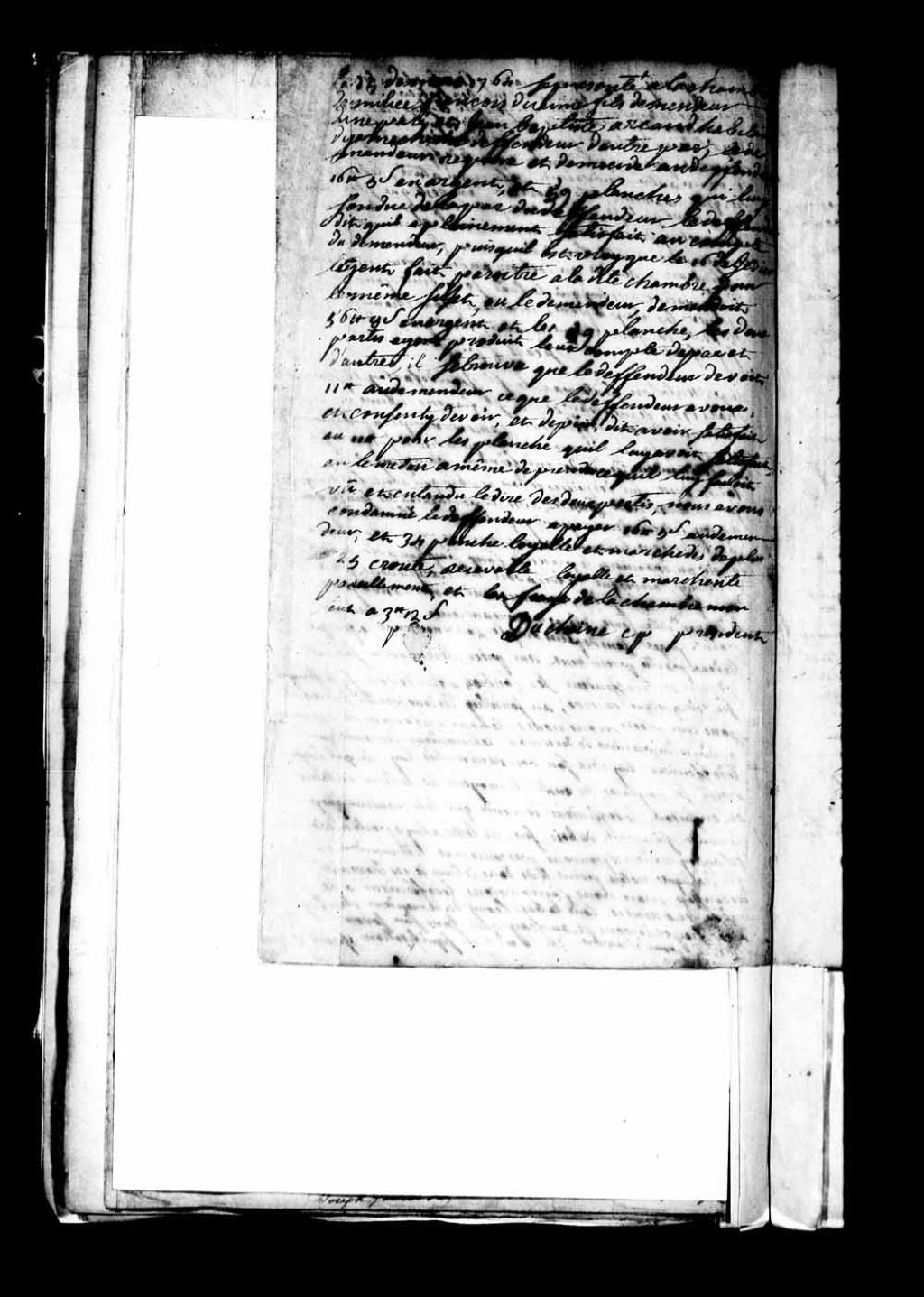 Cause entre Françcois Duaime (Duhaime) fils, demandeur, d'une part, et Jean-Baptiste Arcand, habitant de Yamachiche, défendeur, d'autre part, laquelle cause étant relative au défaut par le défendeur d'avoir payé seize livres et cinq sols au demandeur et de lui avoir livré cinquante-neuf planches; condamnation dudit défendeur à payer ladite somme et à livrer trente-quatre planches et vingt-cinq croûtes loyales et marchandes au demandeur, ainsi qu'au paiement des frais