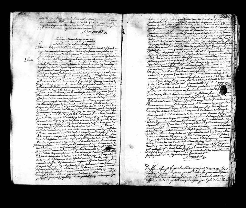 Cause entre sieur Philippe d’Ailleboust de Cerry (Céry), capitaine du senau (navire de commerce) le Saint-Joseph, demandeur, assignant le sieur Pierre Trottier Dézaunier (Desaulniers), négociant de Québec et propriétaire dudit senau (navire de commerce), défendeur., 23 août 1741, Archives nationales à Québec, Fonds Amirauté de Québec, (03Q,TP2,S11,SS1,P14).