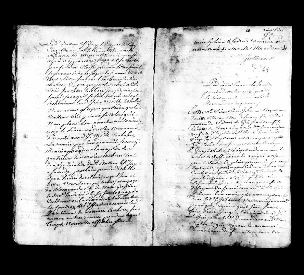 - Le titre complet de la pièce se lit comme suit : Cause entre le sieur Pierre Jehanne, négociant de Québec, au nom et comme fondé du pouvoir du sieur Denis LeGris, son beau-fils, demandeur, comparant par le sieur Decharnay, son procureur, contre Joseph Chabot, navigateur de Québec, défendeur. Le demandeur réclame une somme que le défendeur reconnaît devoir. Cependant, le défendeur plaide qu¿il a remis des fournitures au sieur LeGris et demande un sursis jusqu¿à l¿arrivée du sieur LeGris. Le tribunal donne acte aux positions des parties et ordonne le sursis jusqu¿à l¿arrivé dudit sieur LeGris. [Voir la suite de ce dossier en date du 23 novembre 1754].