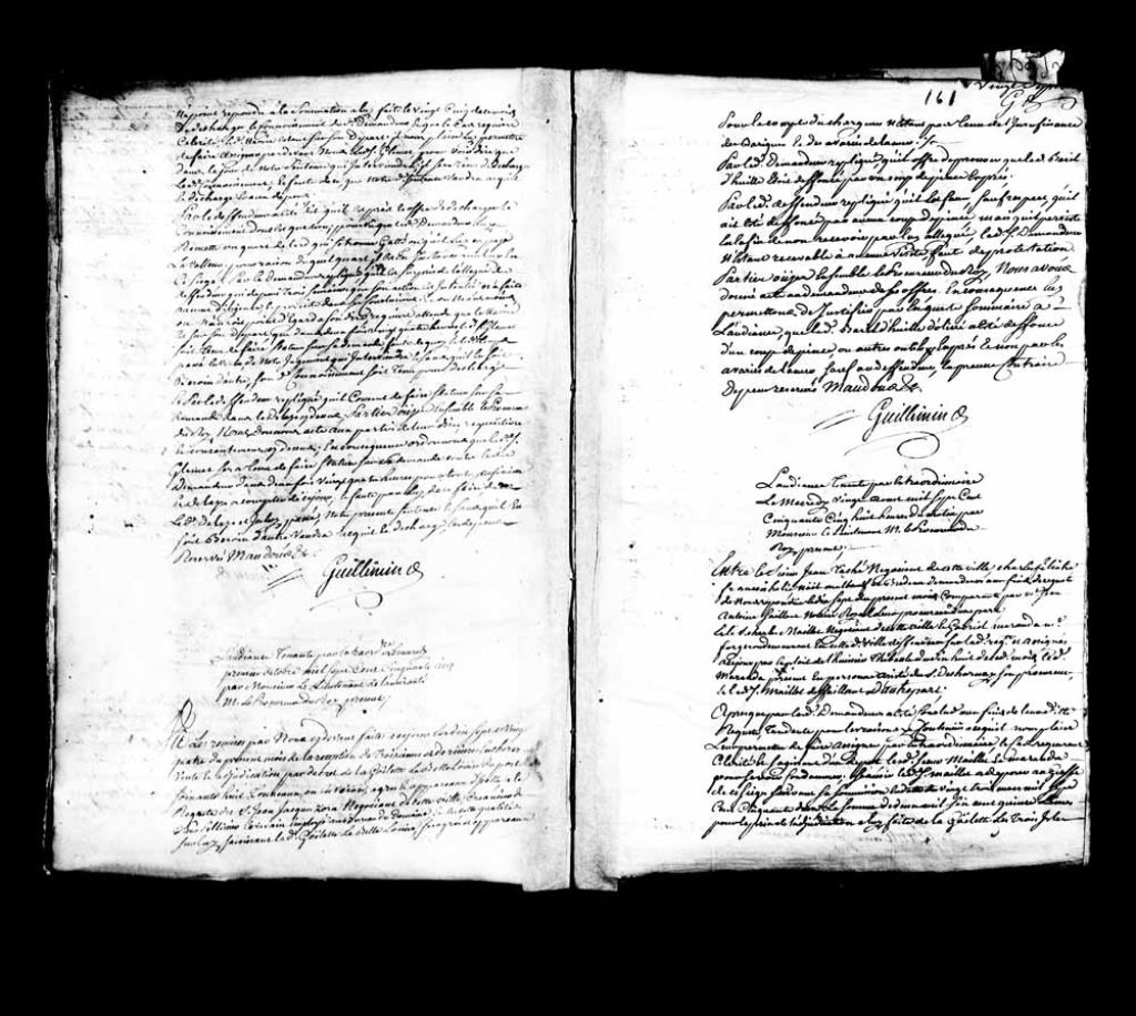 - Cause entre le sieur Jean Taché, Charles Filiatrault, François Hélie, Noël Malboeuf et Louis Bredeau, demandeurs, comparant par maître Jean-Antoine Saillant, leur procureur, contre le sieur Charles Maillet et Gabriel Maranda, défendeurs, ledit Maranda présent assisté du sieur Decharnay, son procureur.