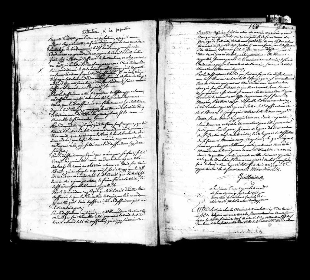 Cause entre le sieur Louis Dubreuil, négociant de Québec, demandeur, comparant par le sieur Decharnay, contre le sieur Honoré-François Dozoir, capitaine du senau le Saint-Pierre de la Grippe de Honfleur, défendeur, comparant par le sieur Michel-David Tailland, son second., 20 septembre 1755, Archives nationales à Québec, Fonds Amirauté de Québec, (03Q,TP2,S11,SS1,P324).