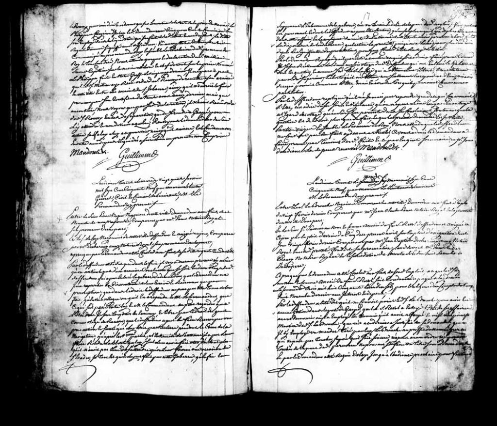Cause entre le sieur Labrouche (Labrousse), négociant de Québec, demandeur, comparant par maître Jean-Claude Panet, notaire royal en la Prévôté de Québec, contre le sieur Saint-Sauveur, au nom et comme associé du feu sieur Révol, défendeur, comparant par maître Jean-Baptiste Decharnay, notaire royal en la Prévôté de Québec, fondé de sa procuration en date du 18 décembre dernier. Le demandeur réclame un compte de 3 850 livres 10 sols pour l’achat de morue pour le compte du feu sieur Révol. Le défendeur plaide que le défunt n’a fait aucune mention du demandeur. Le tribunal accorde au demandeur le délai par lui demandé pour fournir des défenses., 7 mars 1759, Archives nationales à Québec, Fonds Amirauté de Québec, (03Q,TP2,S11,SS1,P421).