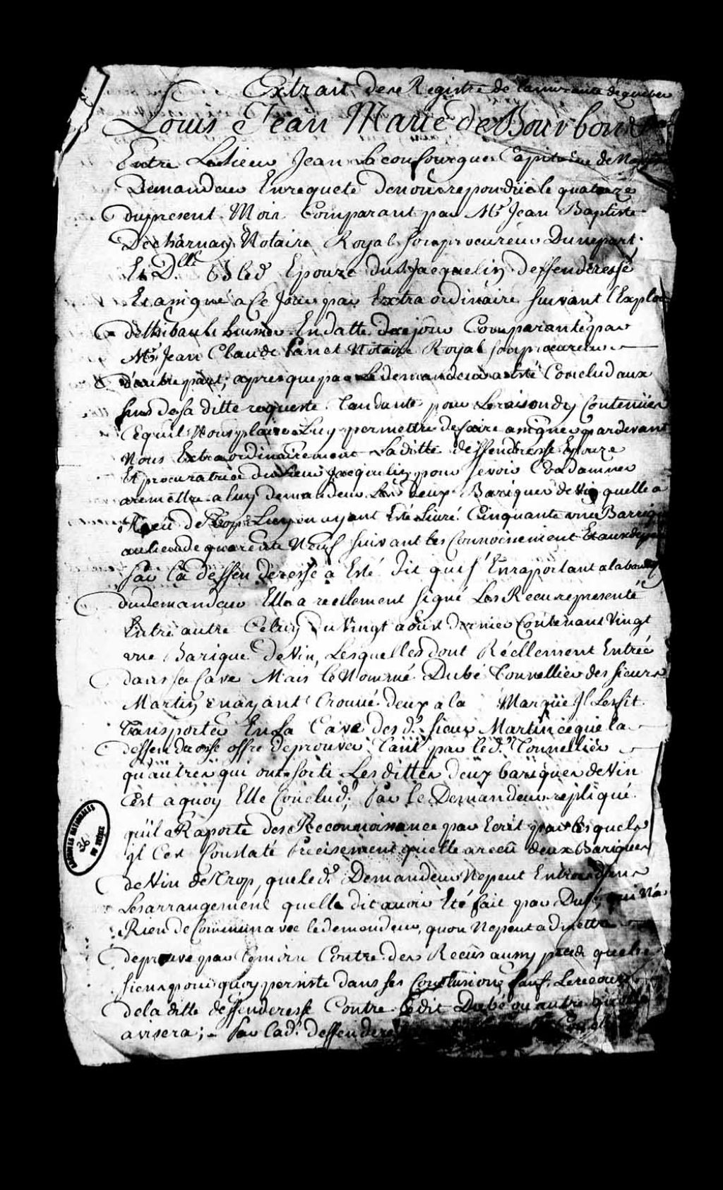 Cause entre Jean Laconfourque (Laconfourgue), capitaine de navire, demandeur, contre la dame Jacquelin (Marie-Élisabeth DeBlé, Bled), défenderesse, il est ordonné que les deux barriques de vin livrées par erreur à la dame Jacquelin devront être remises au demandeur