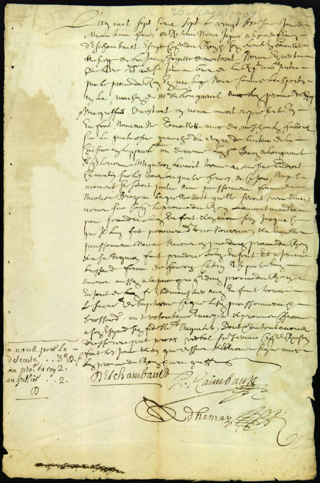 Procès-verbal concernant l'abandon d'un nouveau-né sur les marches de l'habitation de Charles Lemoine, baron de Longueuil