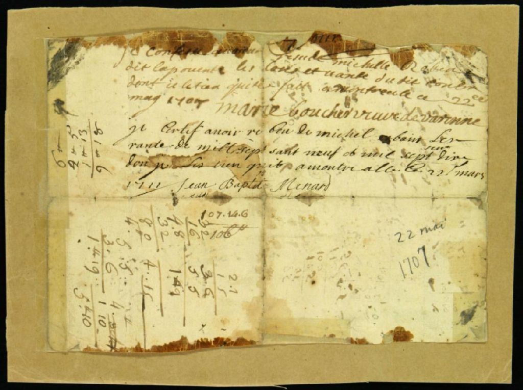 - Ce dossier de matière privée est composé des pièces suivantes : la quittance par Marie Boucher, veuve de Varennes, à Michel Robin dit Lapointe pour cens et rentes et une autre quittance de Jean-Baptiste Ménard à Michel Robin pour les rentes de 1709